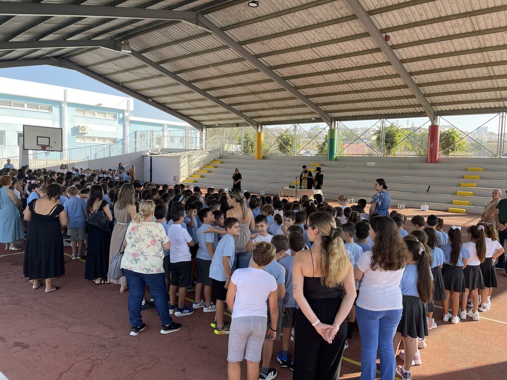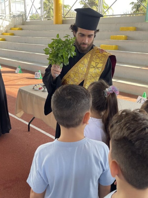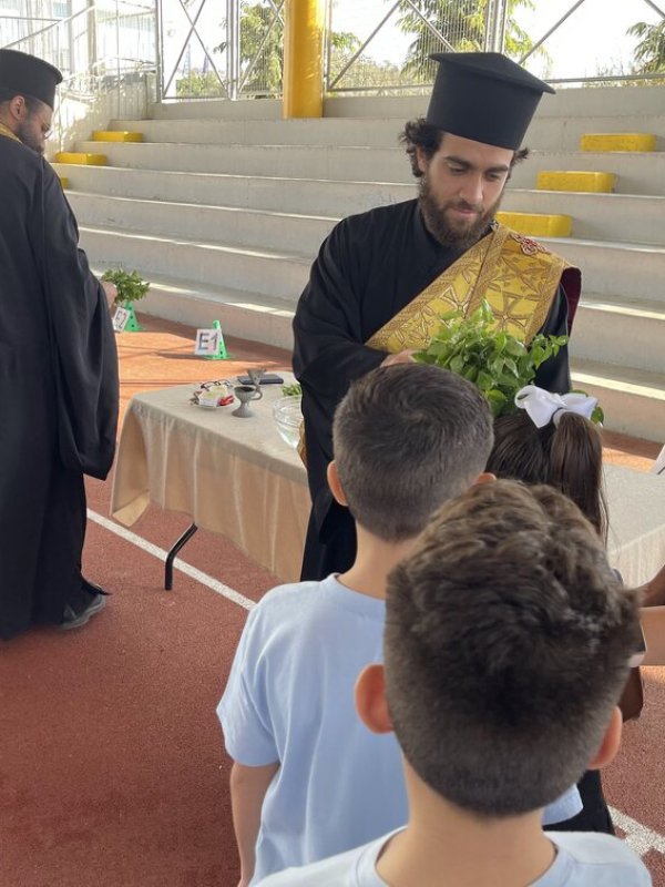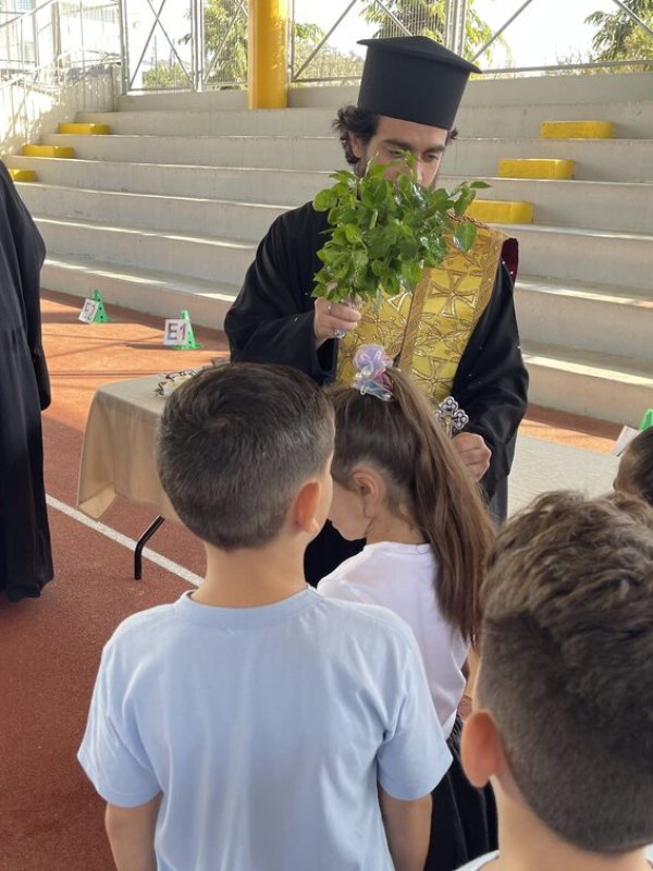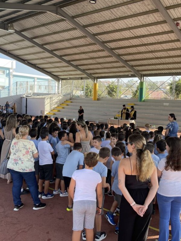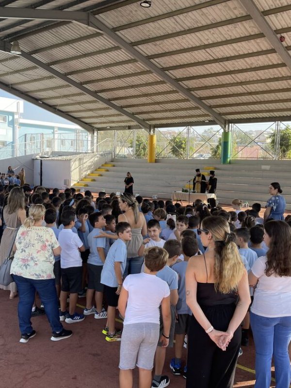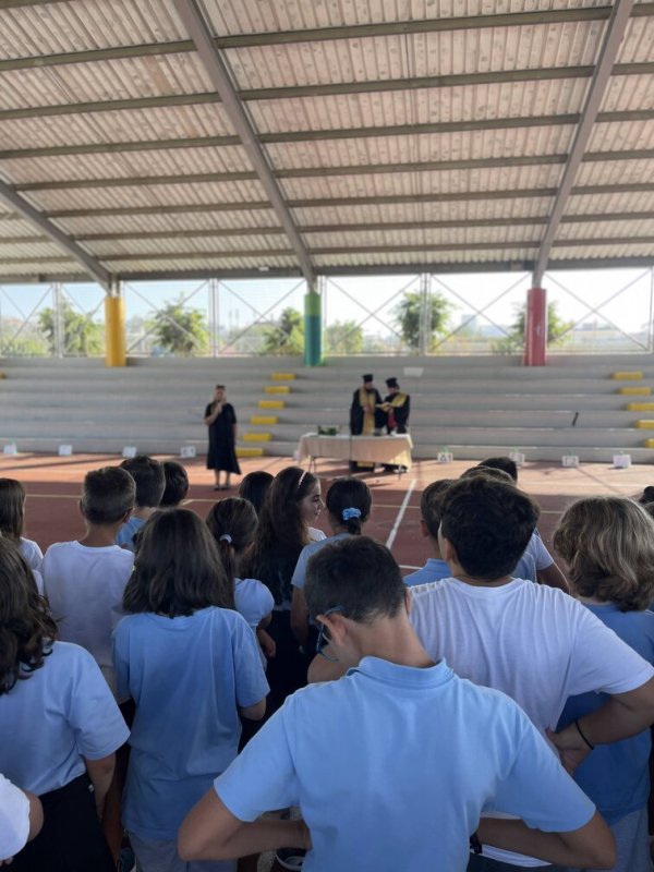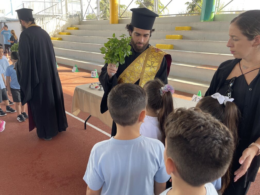 Με την ευκαιρία της έναρξης της νέας σχολικής χρονιάς 2025-2026, την Δευτέρα 15 Σεπτεμβρίου, τα παιδιά και το προσωπικό του σχολείου μας συγκεντρωθήκαμε στο στέγαστρο όπου ο ιερέας της ενορίας τέλεσε την ακολουθία του αγιασμού. Με το τέλος του αγιασμού ο ιερέας έδωσε τις ευχές και την ευλογία του στα παιδιά και στο προσωπικό του σχολείου για καλή και παραγωγική σχολική χρονιά.