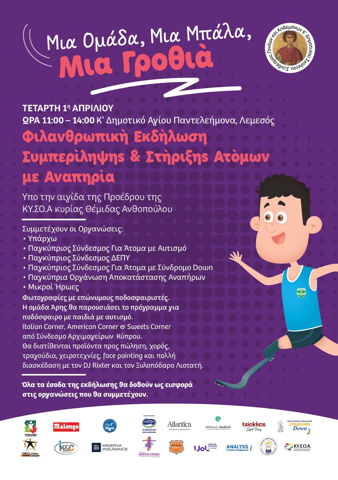 Ο Σύνδεσμος Γονέων του σχολείου μας σας προσκαλεί σε μια ξεχωριστή εκδήλωση αφιερωμένη στη συμπερίληψη και τη στήριξη των ατόμων με αναπηρία.